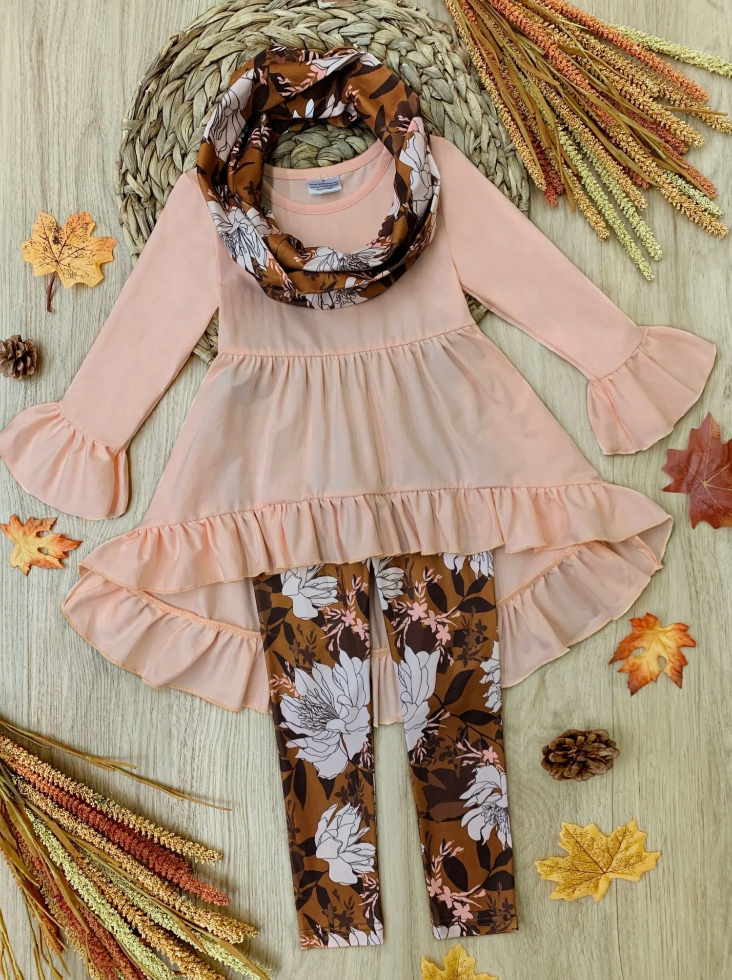 - Come through, Fall blooms! This chic three-piece leggings set has everything your mini maven needs to make statements all season long