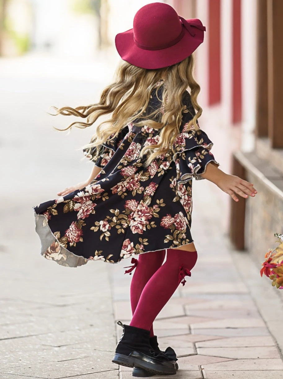 - Come through hi-lo ruffle dress cuteness! With delicate flowers and super-soft fabric, your diva will adore stepping out in this sweet outfit.