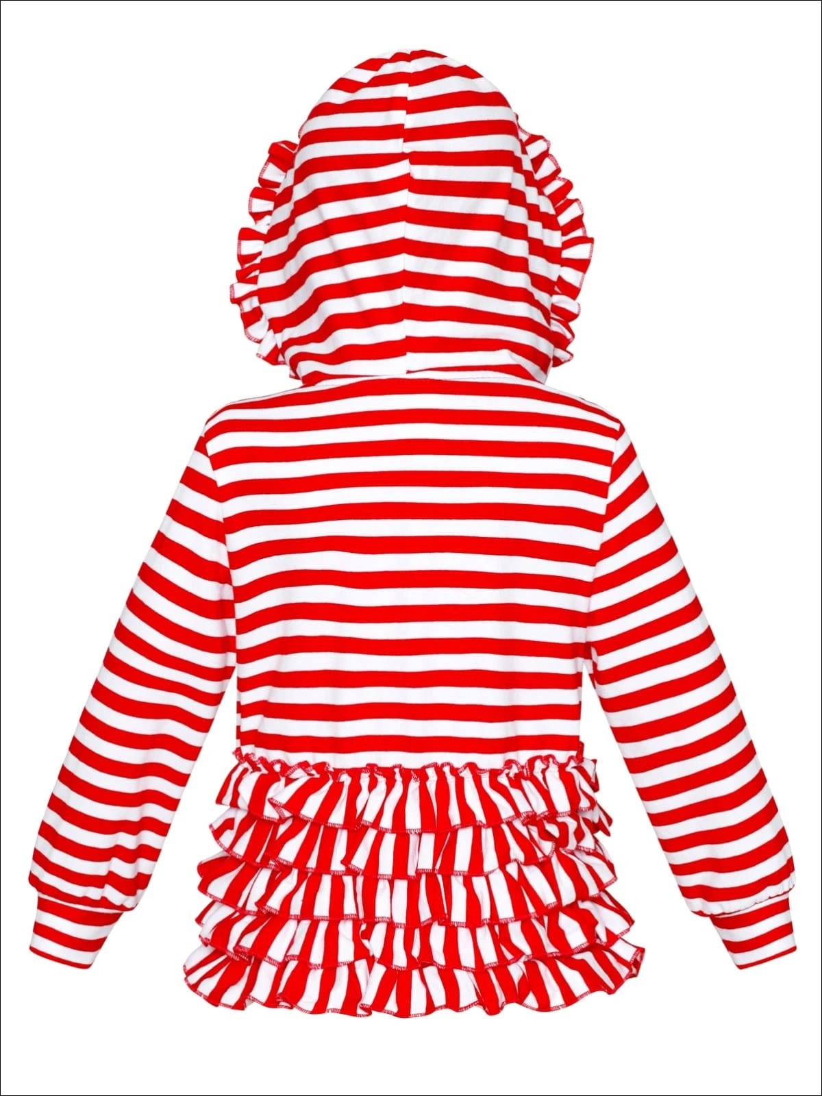 - Long-sleeve button-down striped hoodie cardigan with hood, side, and back ruffles