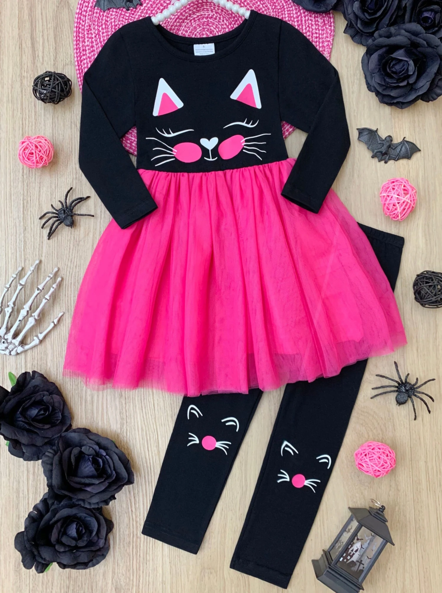 - Glam girls too cute to spook with look oh-so-charming in this cat applique legging set. The flouncy tulle tunic was made for twirling the night away!