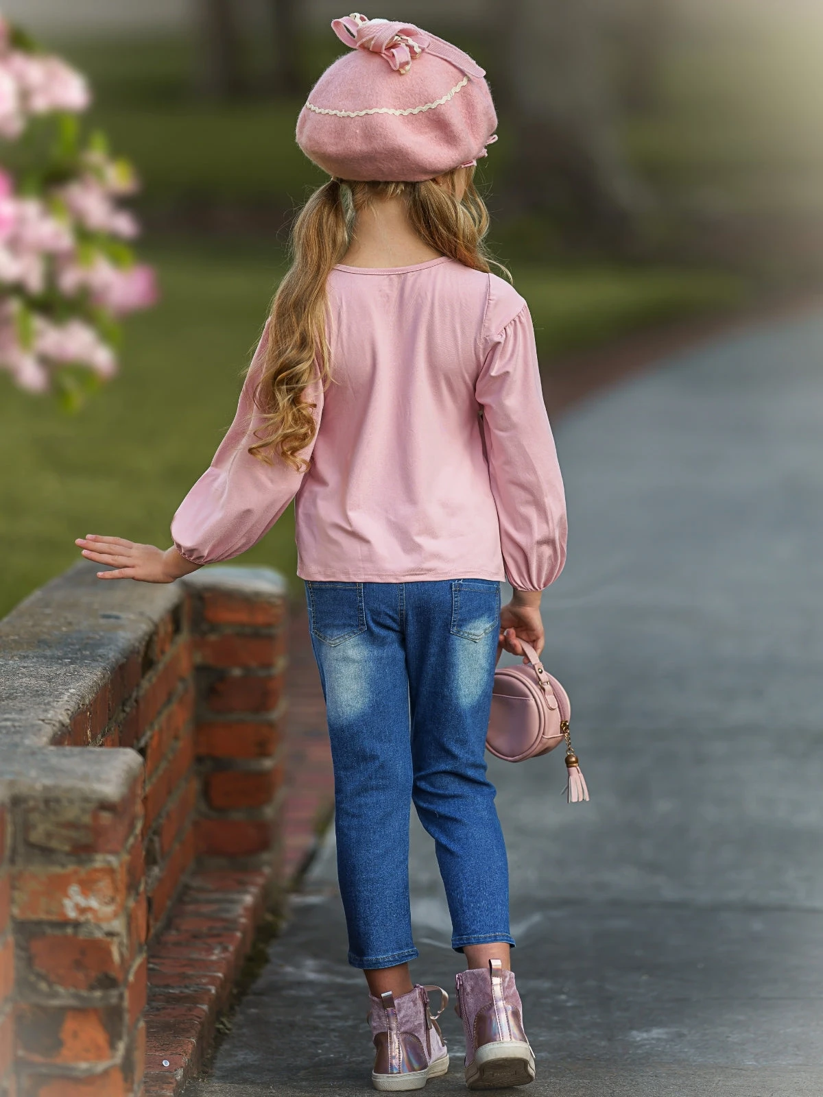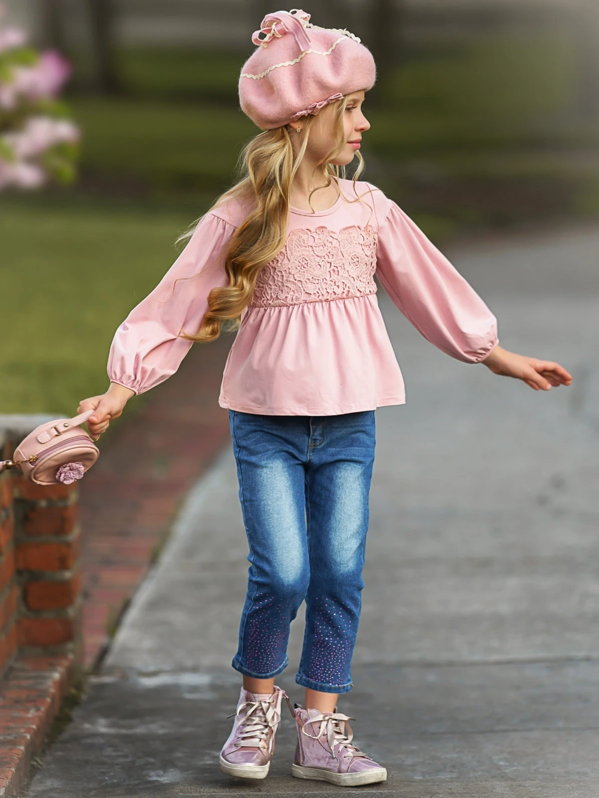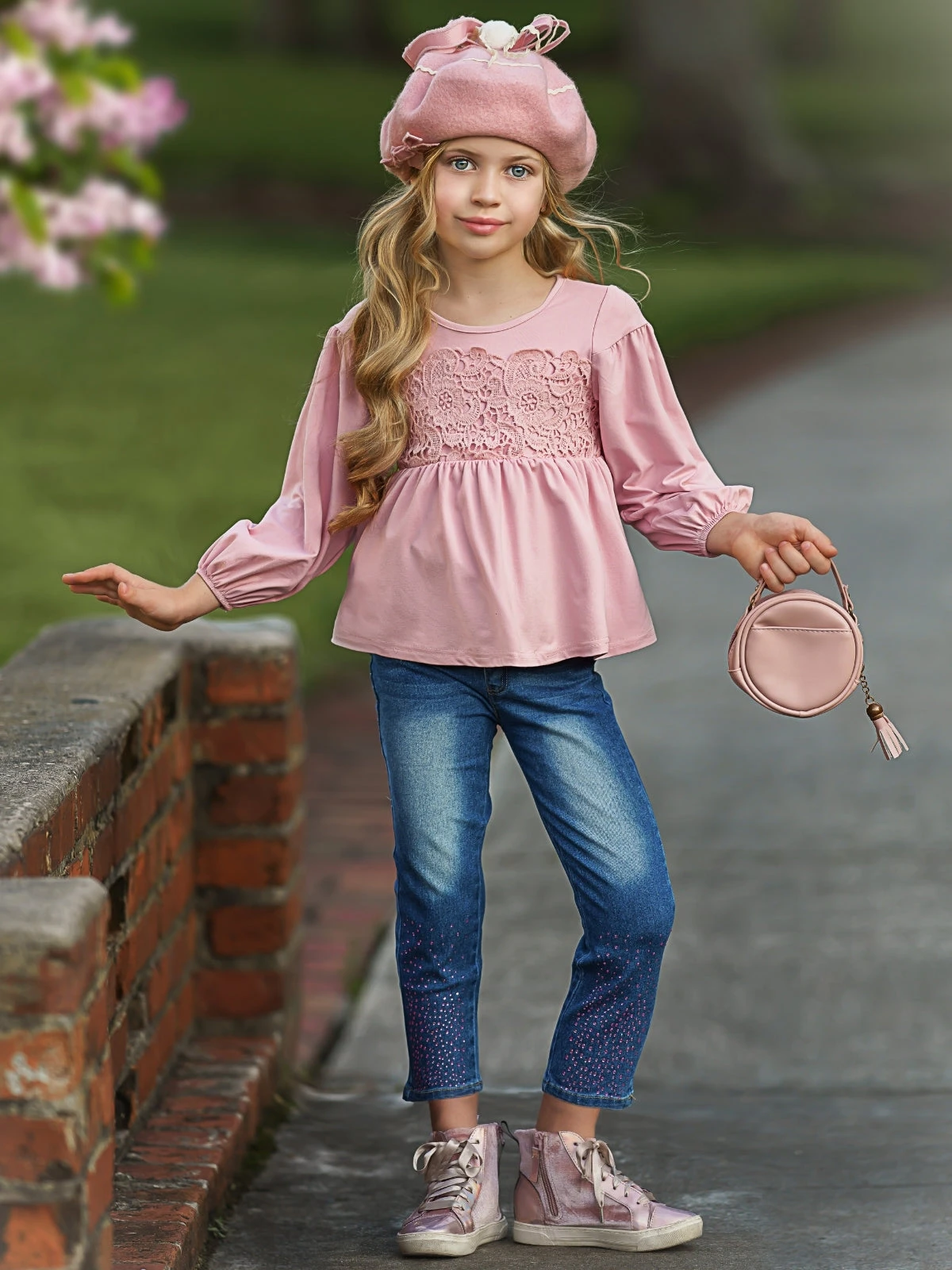 - There’s nothing like chic jean set to make Autumn worth FALL-ing for! A brilliant burgundy tunic features delicate lace in the middle, and the ombre bedazzled jeans will make for the cutest photos.