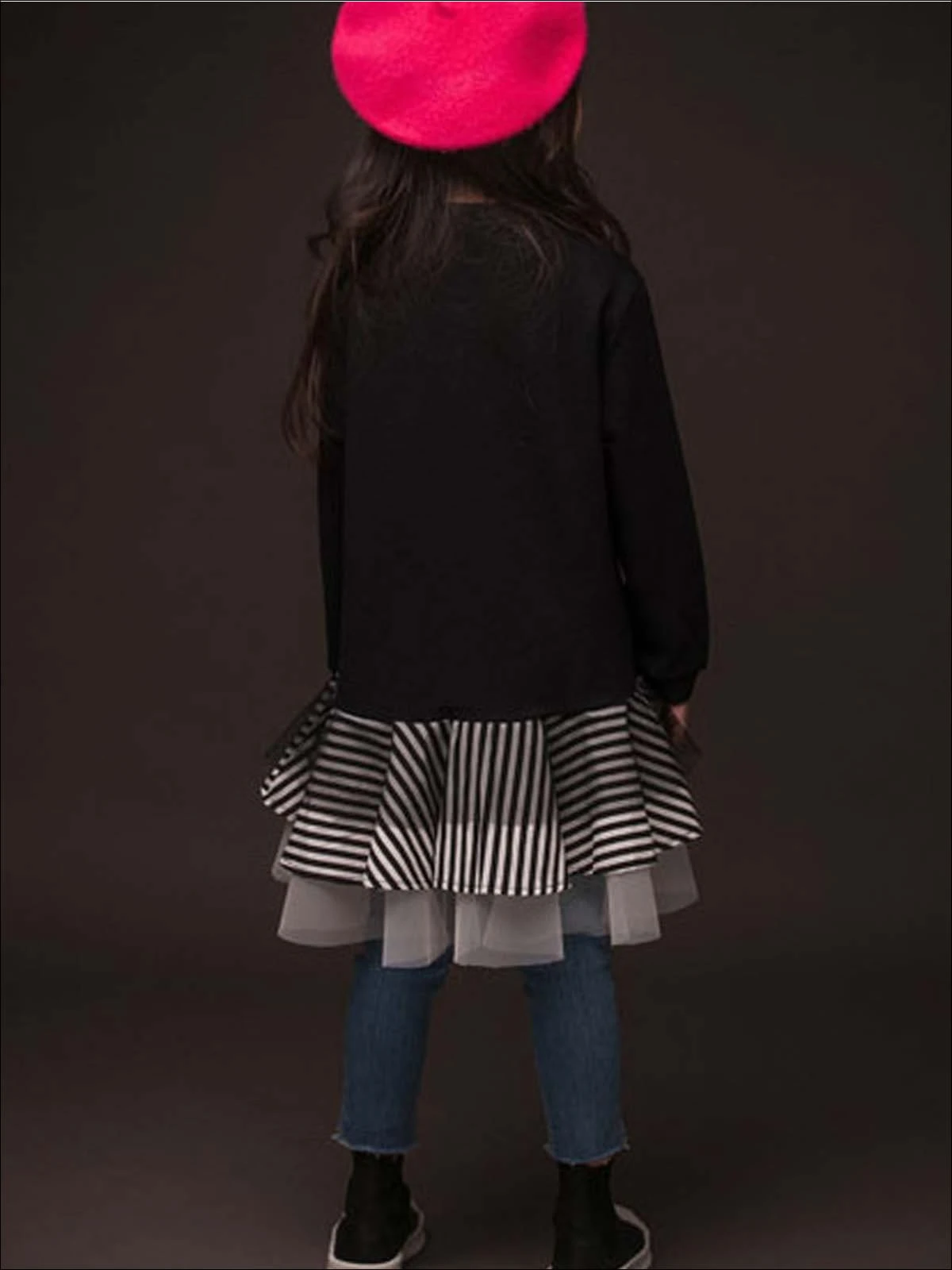 If your ‘lil cutie requested The Most Fashionable Dress, we have just the one for you. Ruffles of striped and white tulle cascading from under the long tunic top, this dress is just adorable, period. The hi-lo isn’t exaggerated, but it adds to the overall playfulness. And oh playful she will be, twirling and smiling. Pinkie-promise!