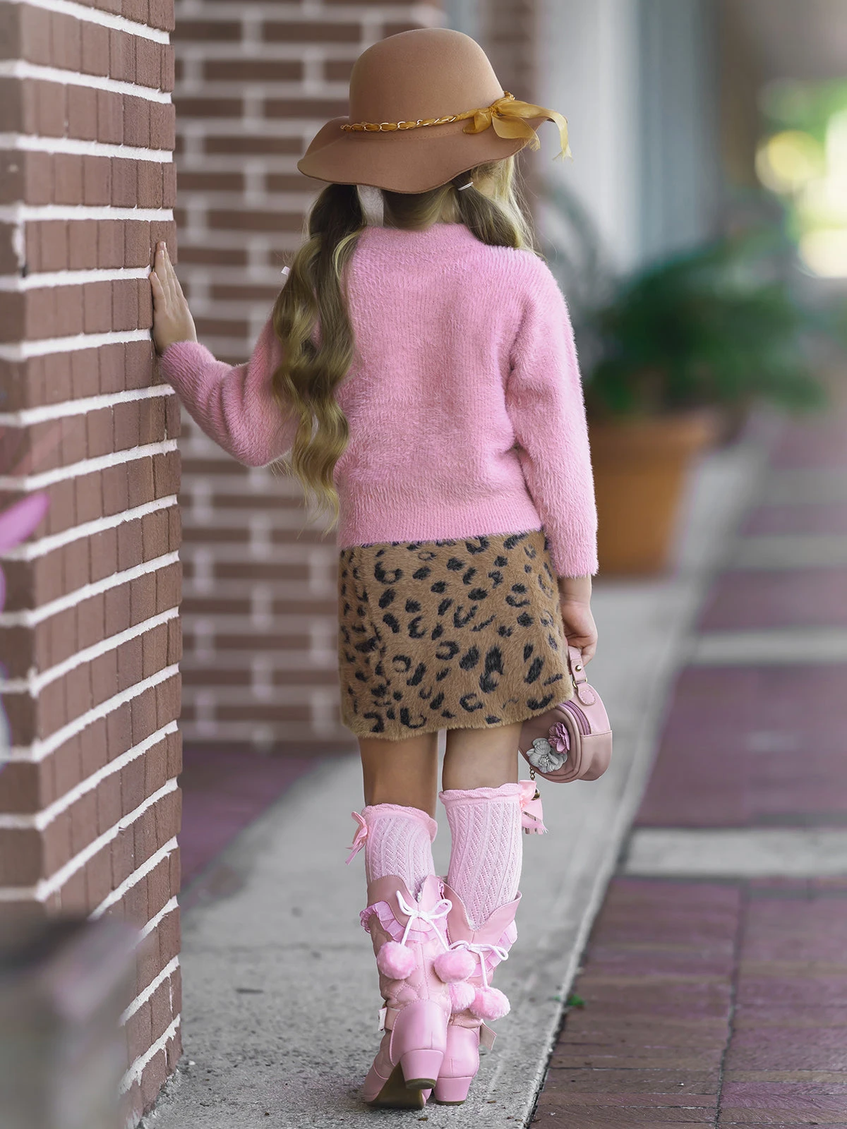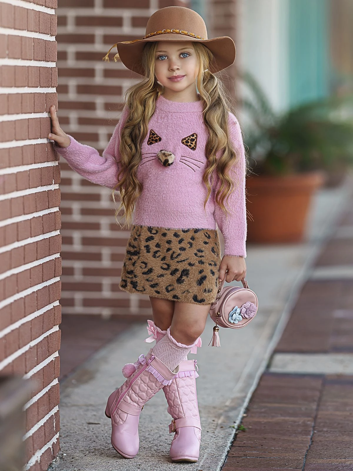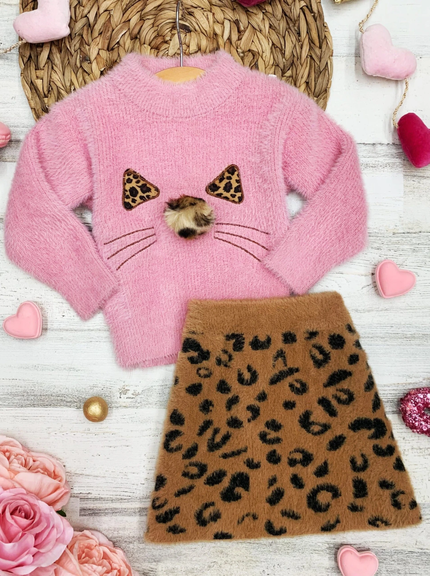 - MEOW is the perfect time to get your little diva this fierce sweater and leopard skirt set. Makes for the cutest back-to-school pictures!