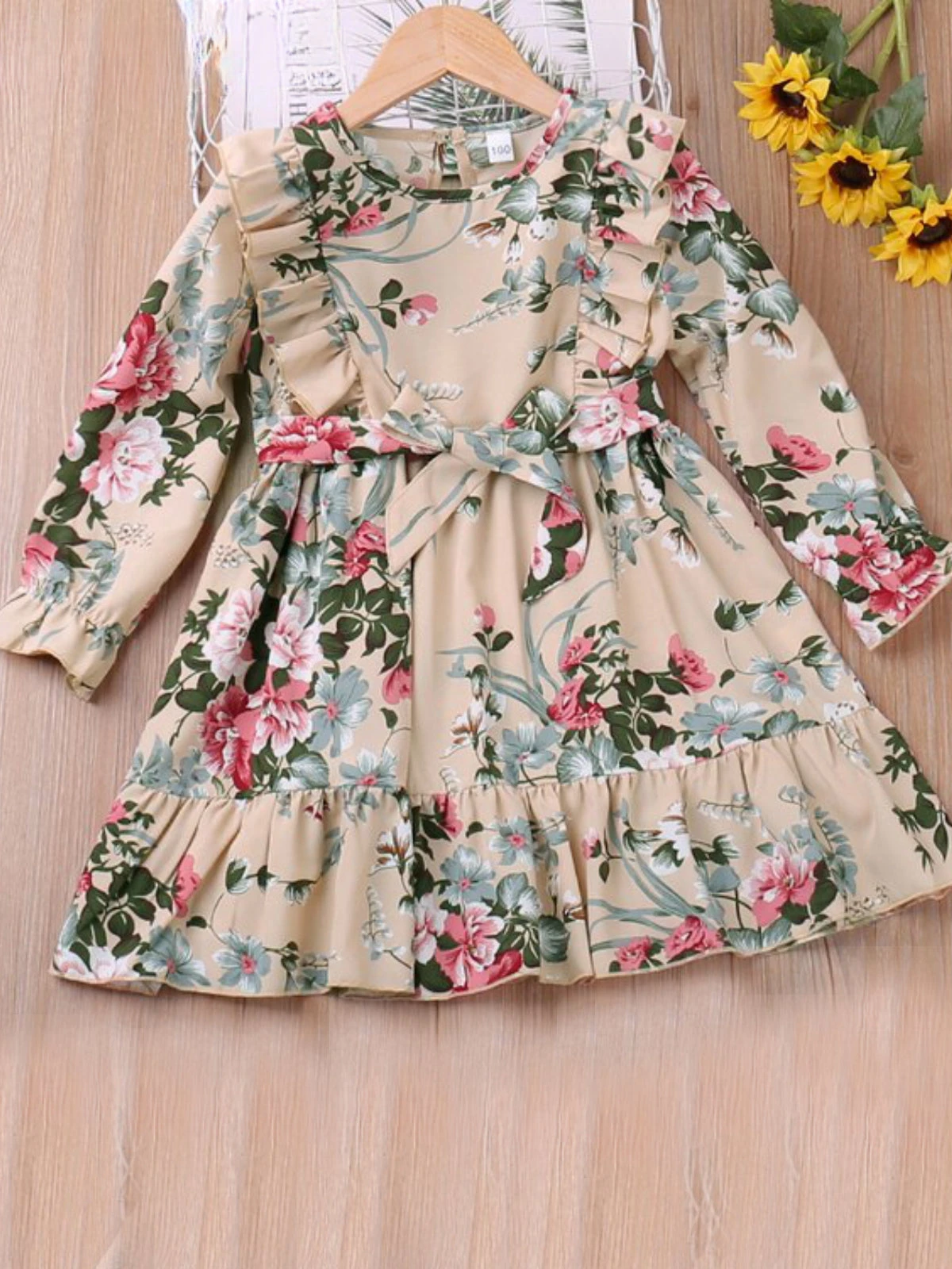 - More blooms, more fun! Our ruffle floral dress features a mood-boosting print, charming details, and a tie-waist design. Guaranteed to make your little girl look like the prettiest flower in the garden!