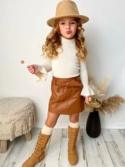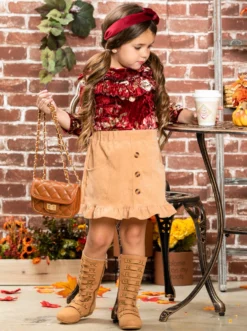 Let her FALL in love with her cold-weather wardrobe all over again! Prep your girl for chilly days with the stylish protection of this easy all-in-one look. She’ll be styled in a flash with this fully composed ensemble that comes with a delicate top and plaid skirt with a sash