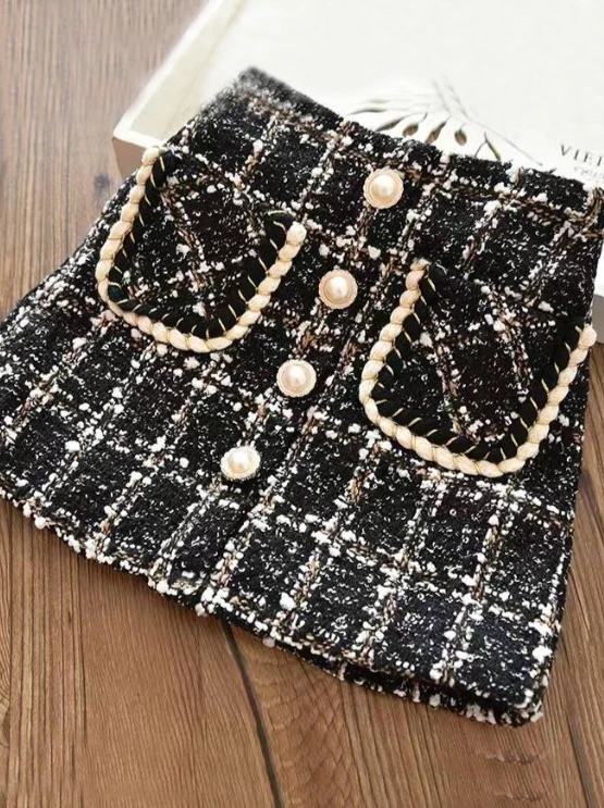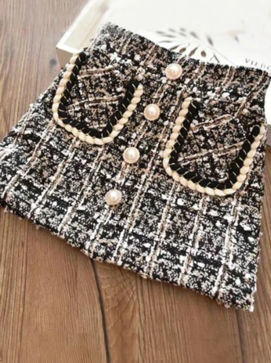 - Pair her favorite top with this chic little tweed skirt featuring pearl buttons and 2 front pockets. Finish the look with some cute Mary Janes, and she’ll be ready to take on the world.