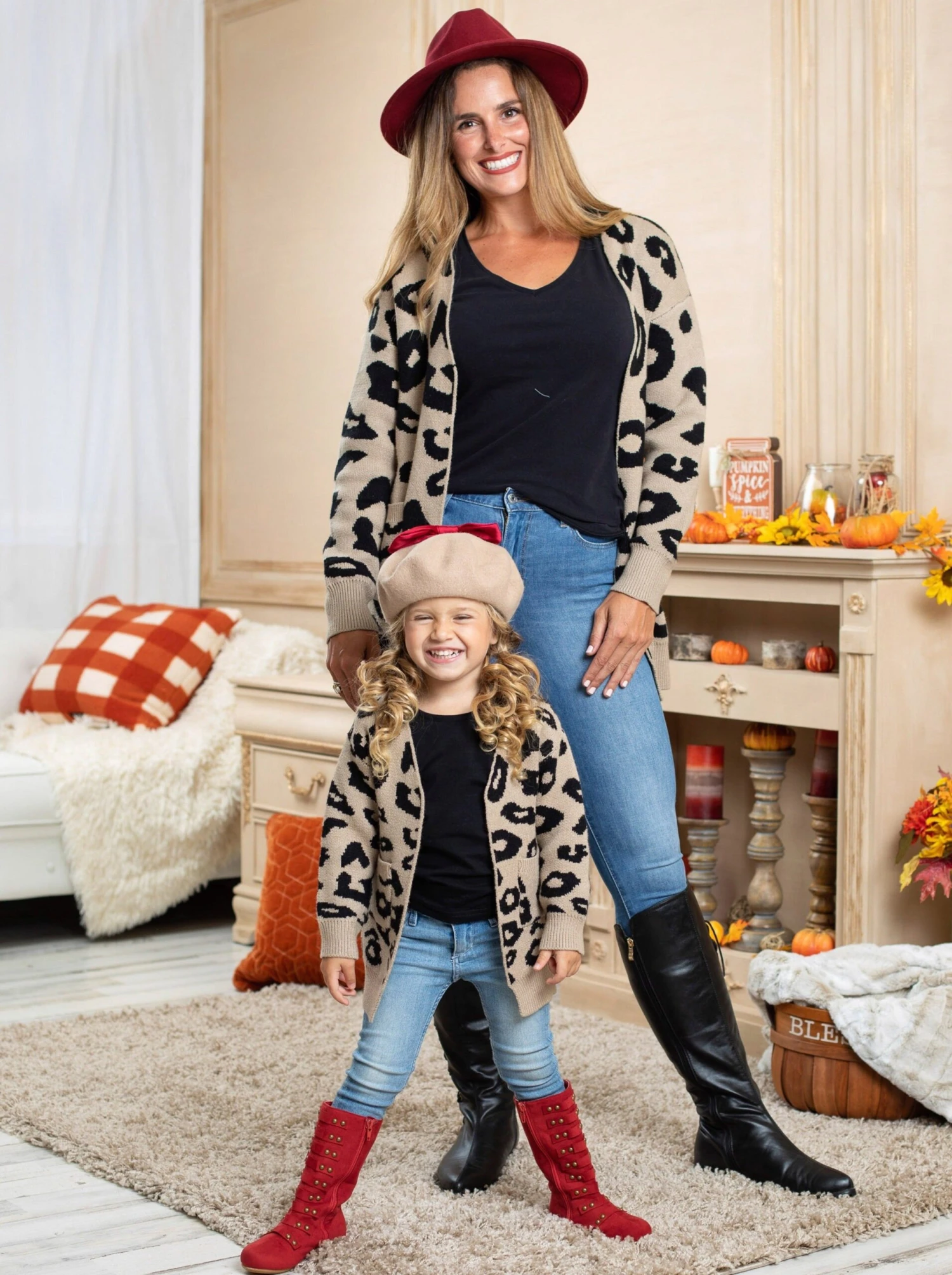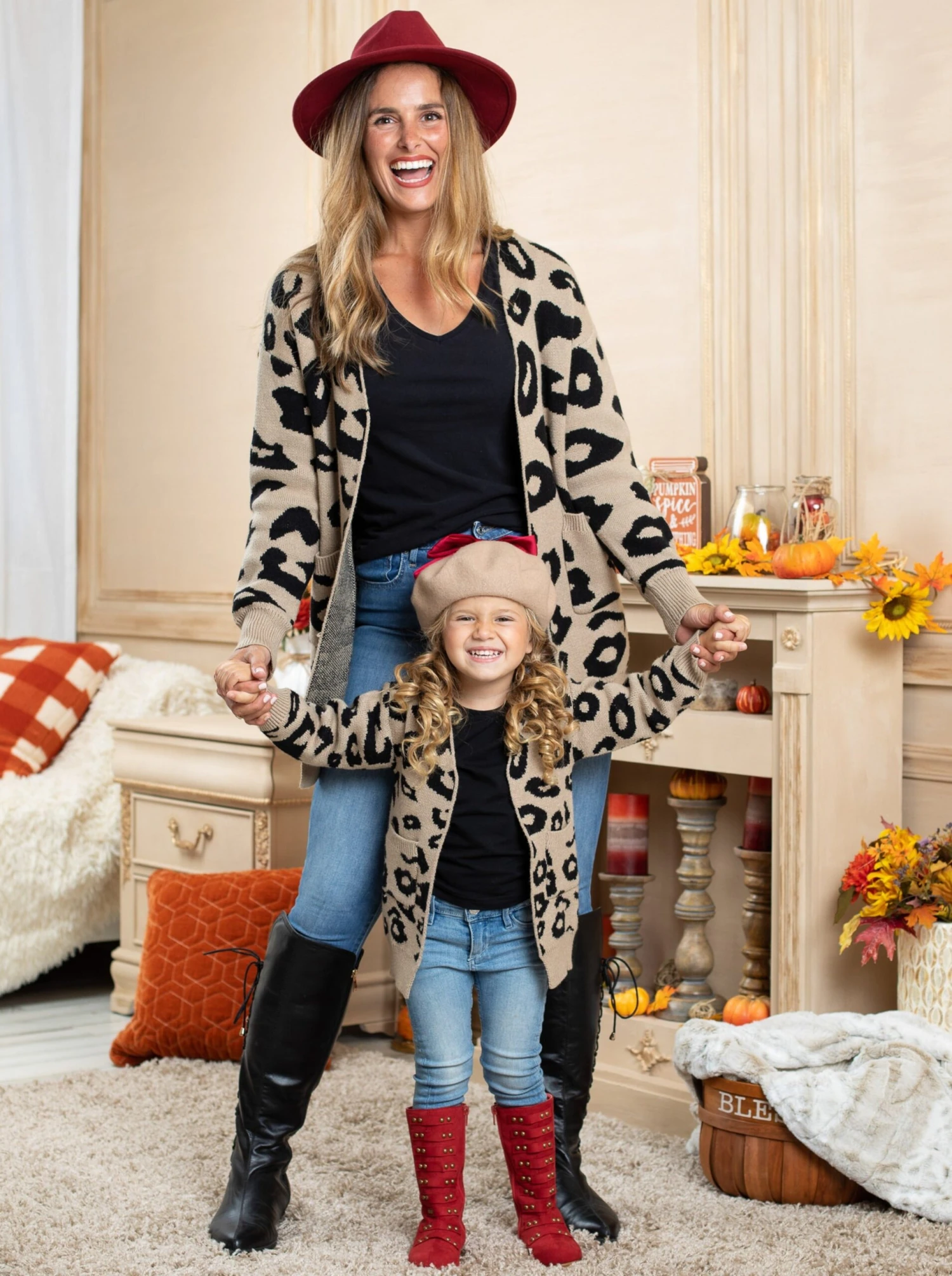 - Show your love in leopard print oversized cardigan. What mother-daughter duo could compete with your chic style? None when you’re best dressed with your bestie!