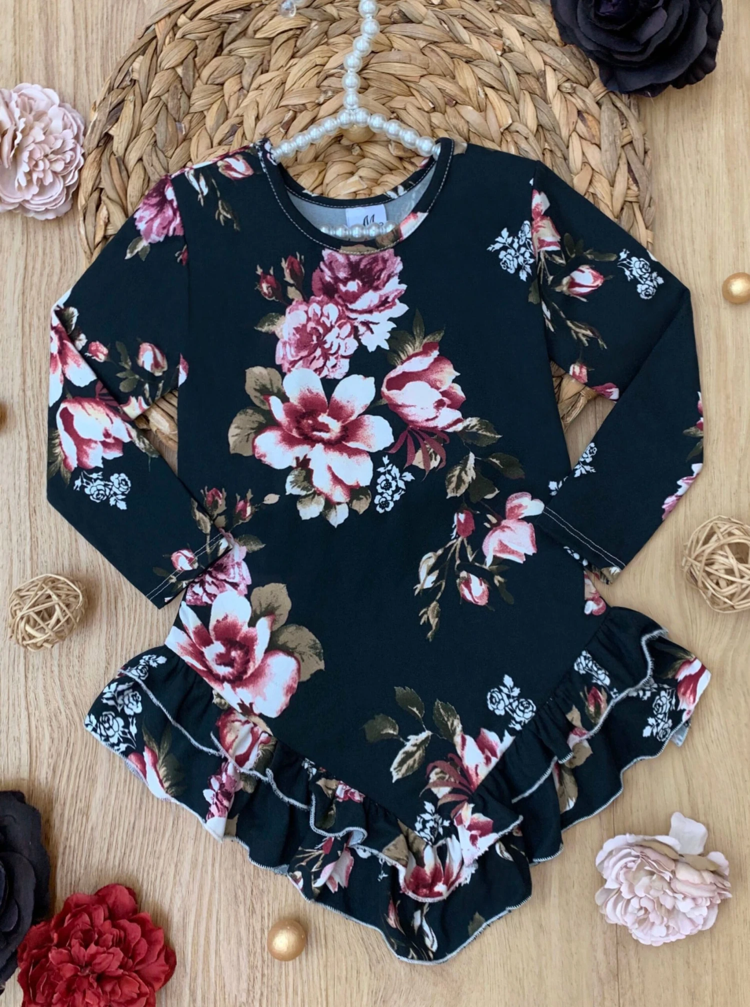- Long-sleeve floral top with ruffle details