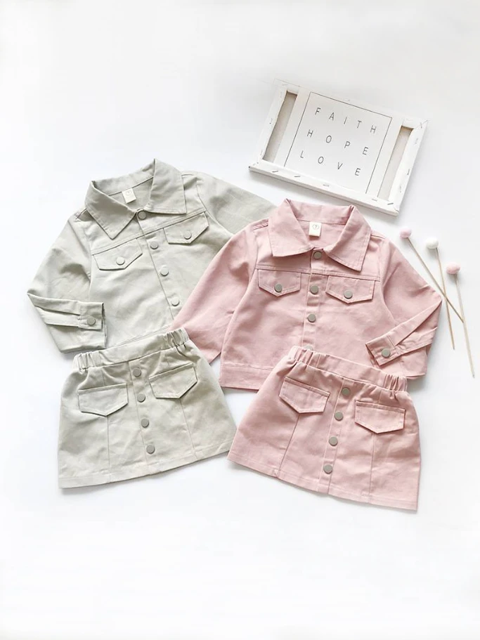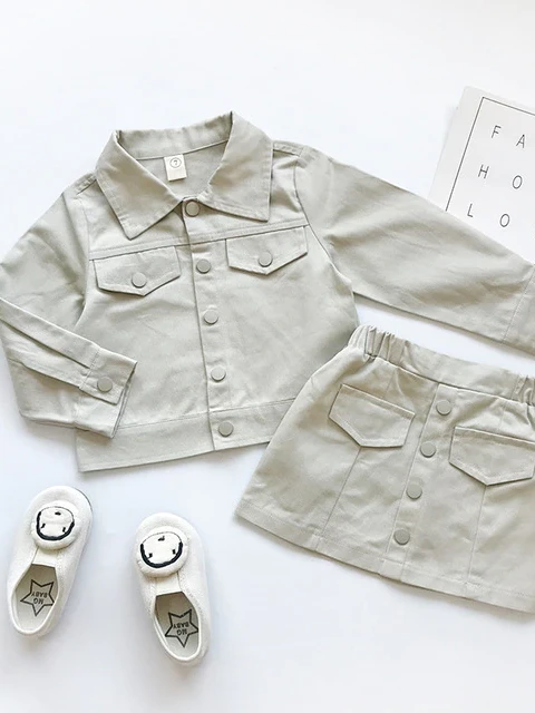 - Don’t be caught without this chic denim jacket and skirt set for your little diva this season. Paired with her favorite tops, it will be the stand-out ensemble she’s been looking for.