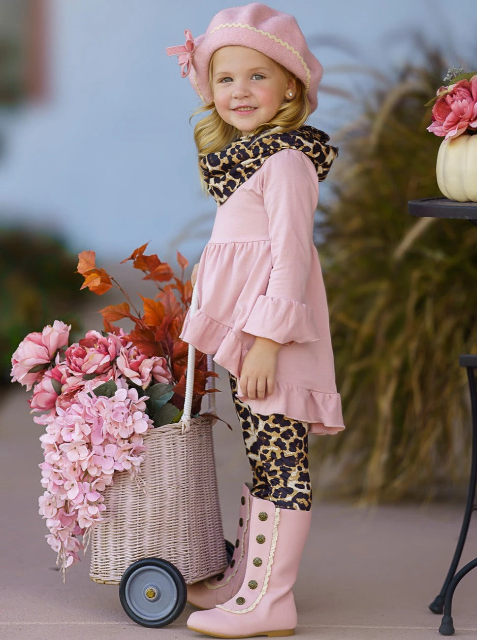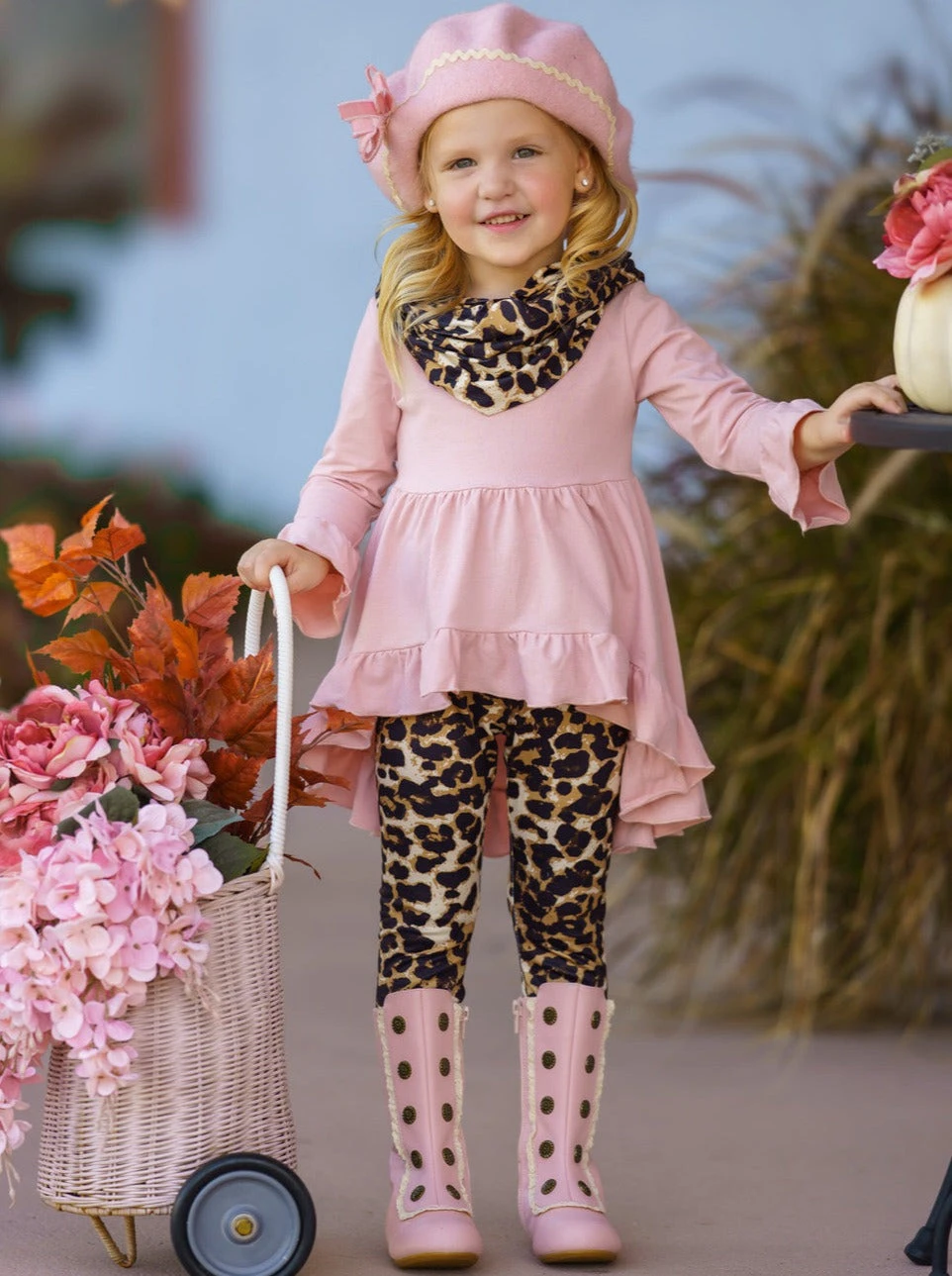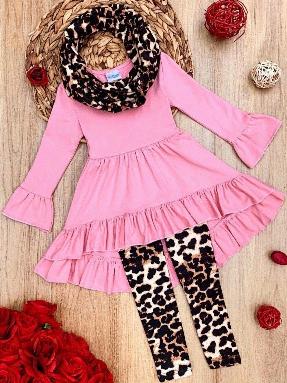 Pretty Pink Tunic, Leopard Legging & Scarf Set
