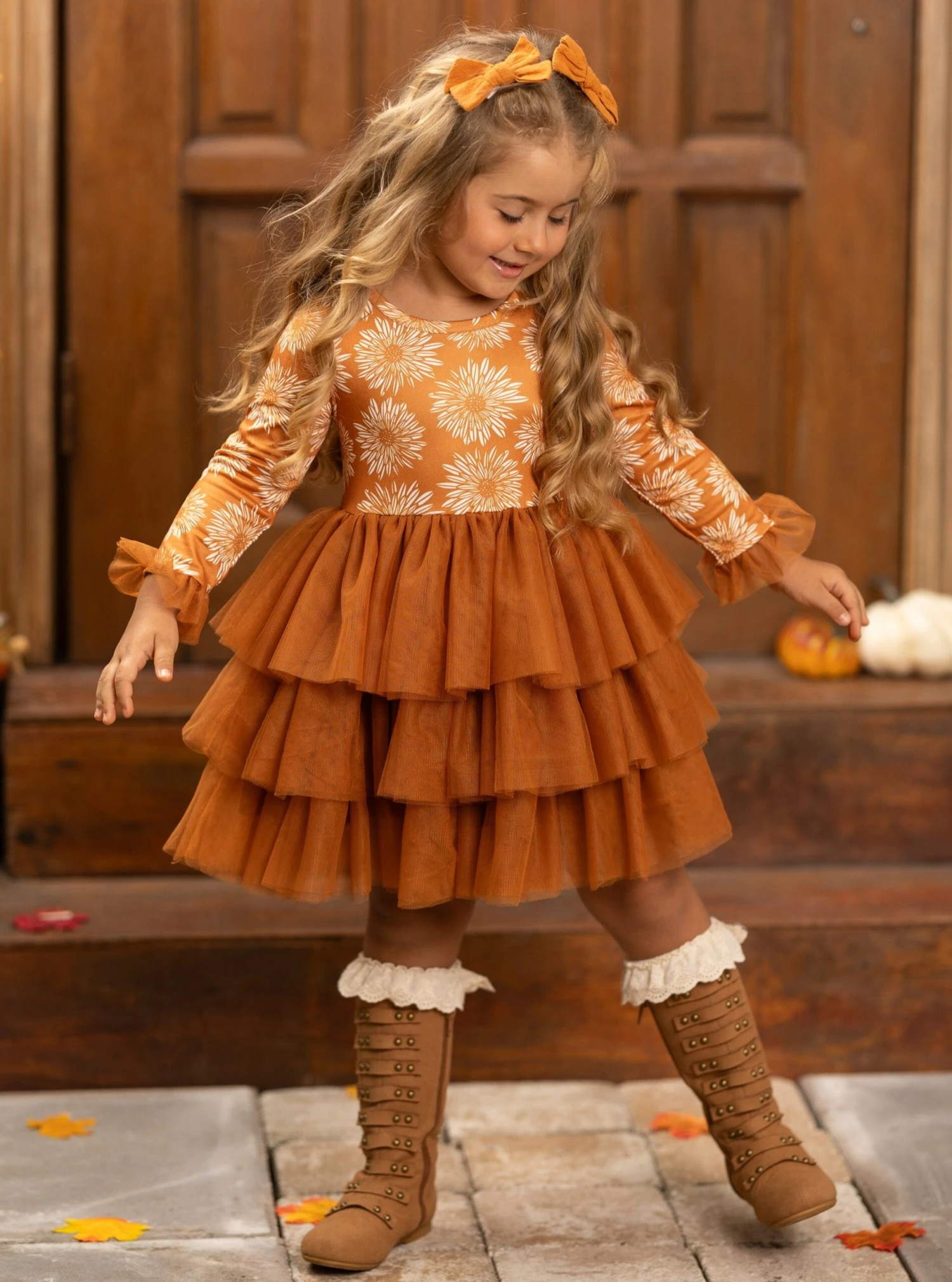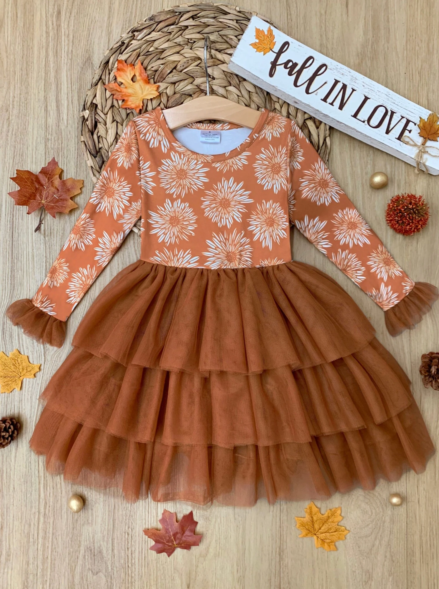 - Your little girl will be ‘tutu’ cute to handle in this brown ruffle tutu dress! Featuring a chic pattern on top and a beautifully layered tulle skirt at the bottom, this flirty frock will have your ballerina doing pirouettes all day long!