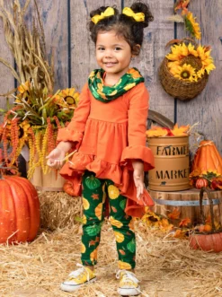 Pumpkin Delight Hi Lo Tunic, Legging & Scarf Set