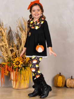 Turkey Season Pom Pom Tunic, Leggings & Scarf Set