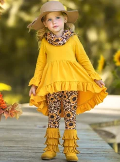 Sunflower Leopard Print Tunic, Legging & Scarf Set