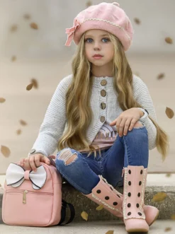 Darling Fashionista Bow-Embellished Pink Sweater & Pants Set