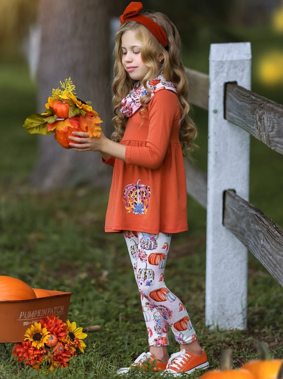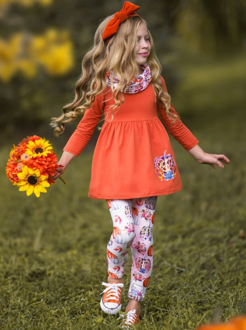 Pumpkin Everything Tunic, Leggings & Scarf Set