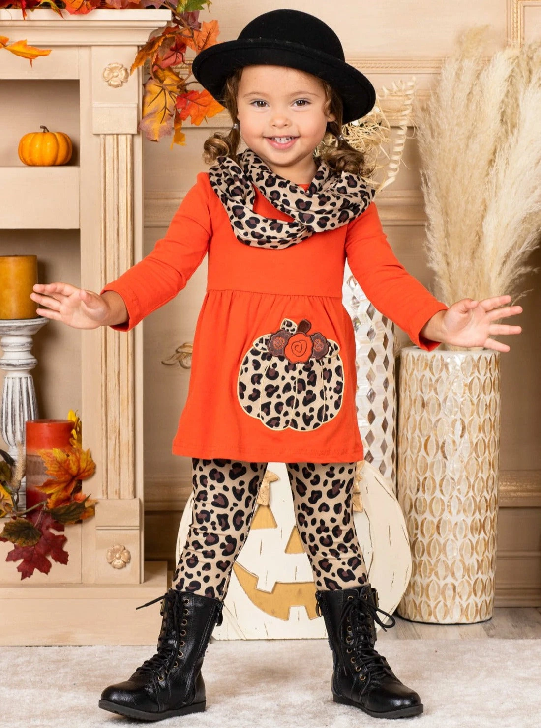 Purrfect Pumpkin Tunic, Leopard Leggings & Scarf Set