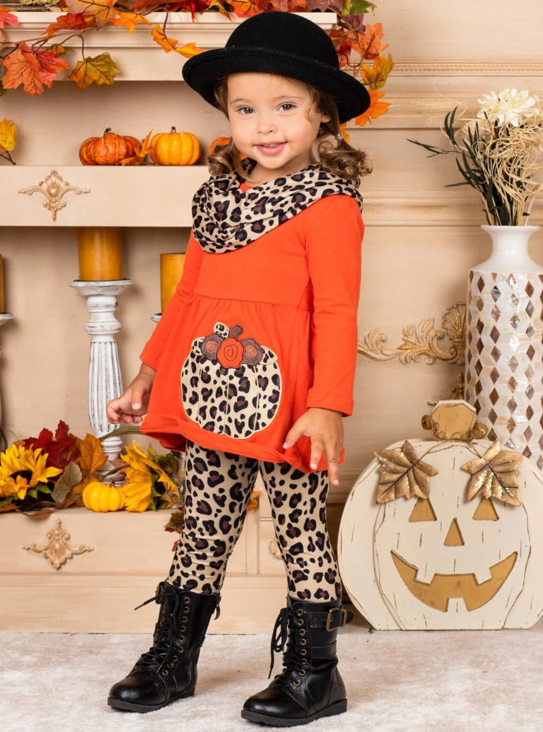 - When it comes to Fall fashion, even the pumpkins are wild! Love the way your little girl looks this harvest season wearing our pumpkin tunic, animal print legging, and scarf set.