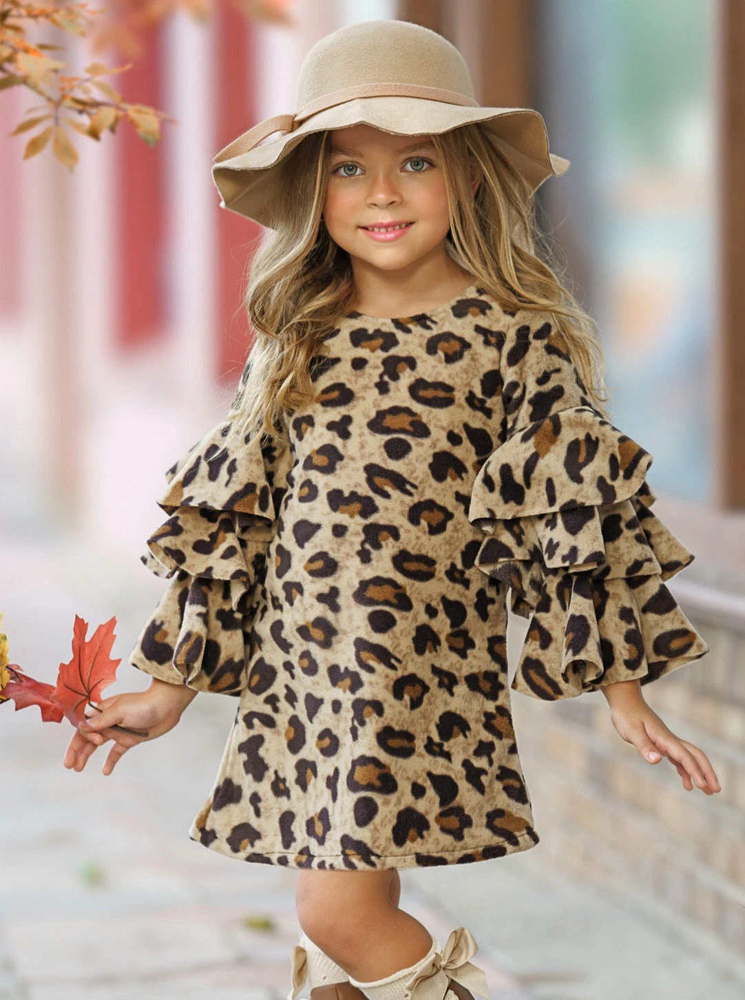 - This animal print bell sleeve dress is spot on when it comes to elevated fall style! Its striking leopard print pattern and flattering A-line silhouette make it a must-have for every little fashionista.