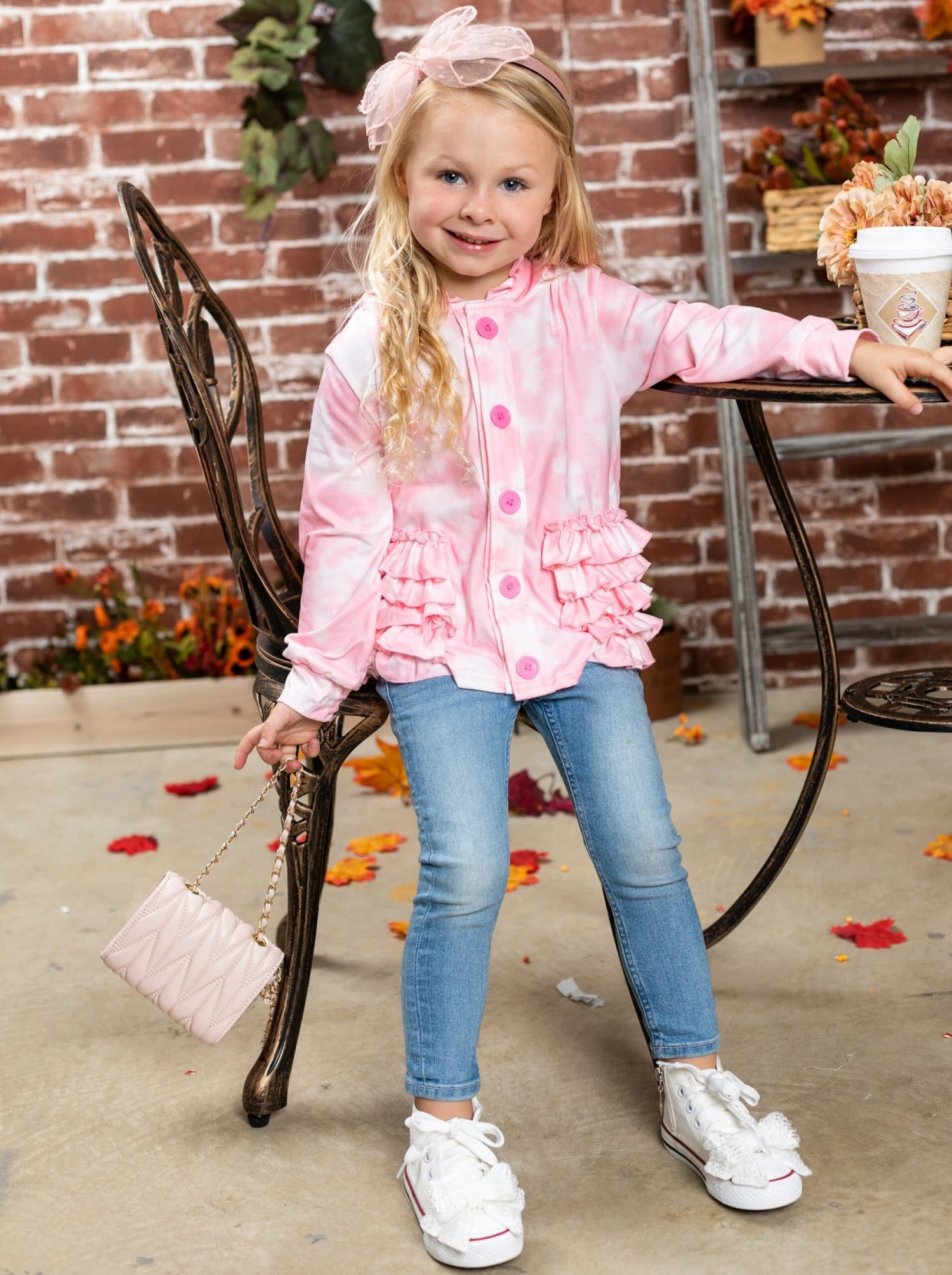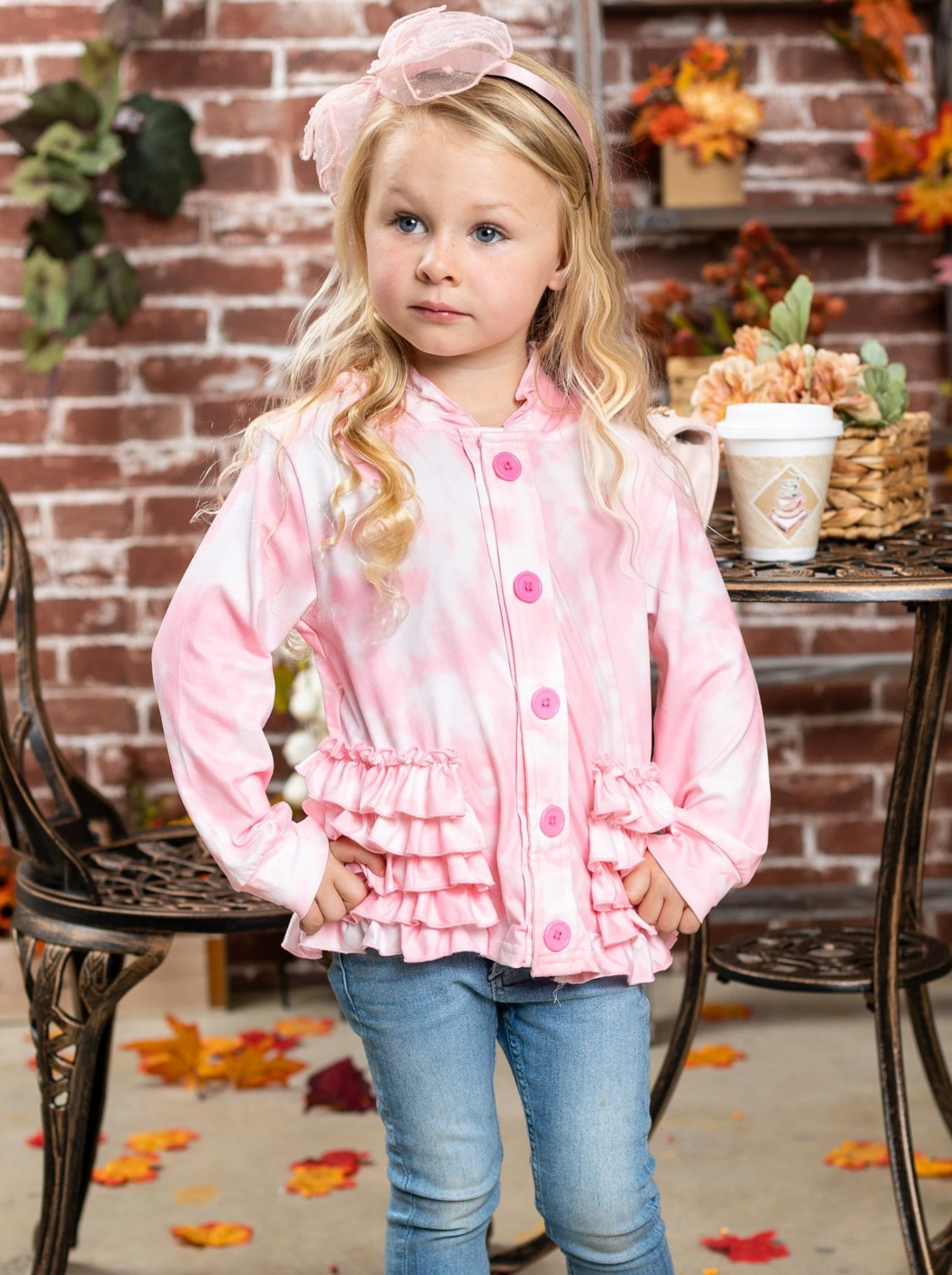 - We are living for the lush tie-dye colors and fancy ruffle details in this button-down hoodie cardigan. Just the thing to style up your diva’s everyday wardrobe!