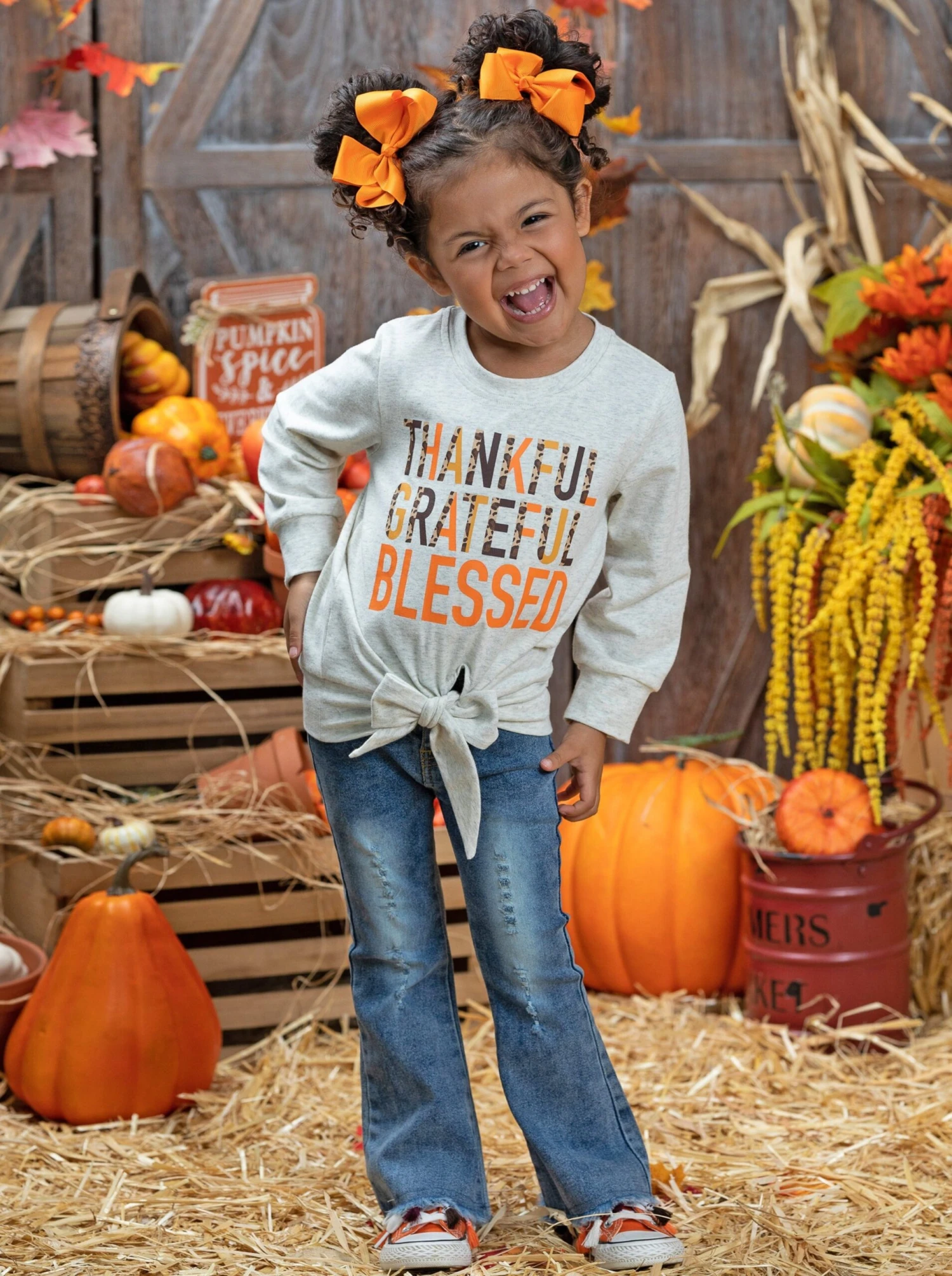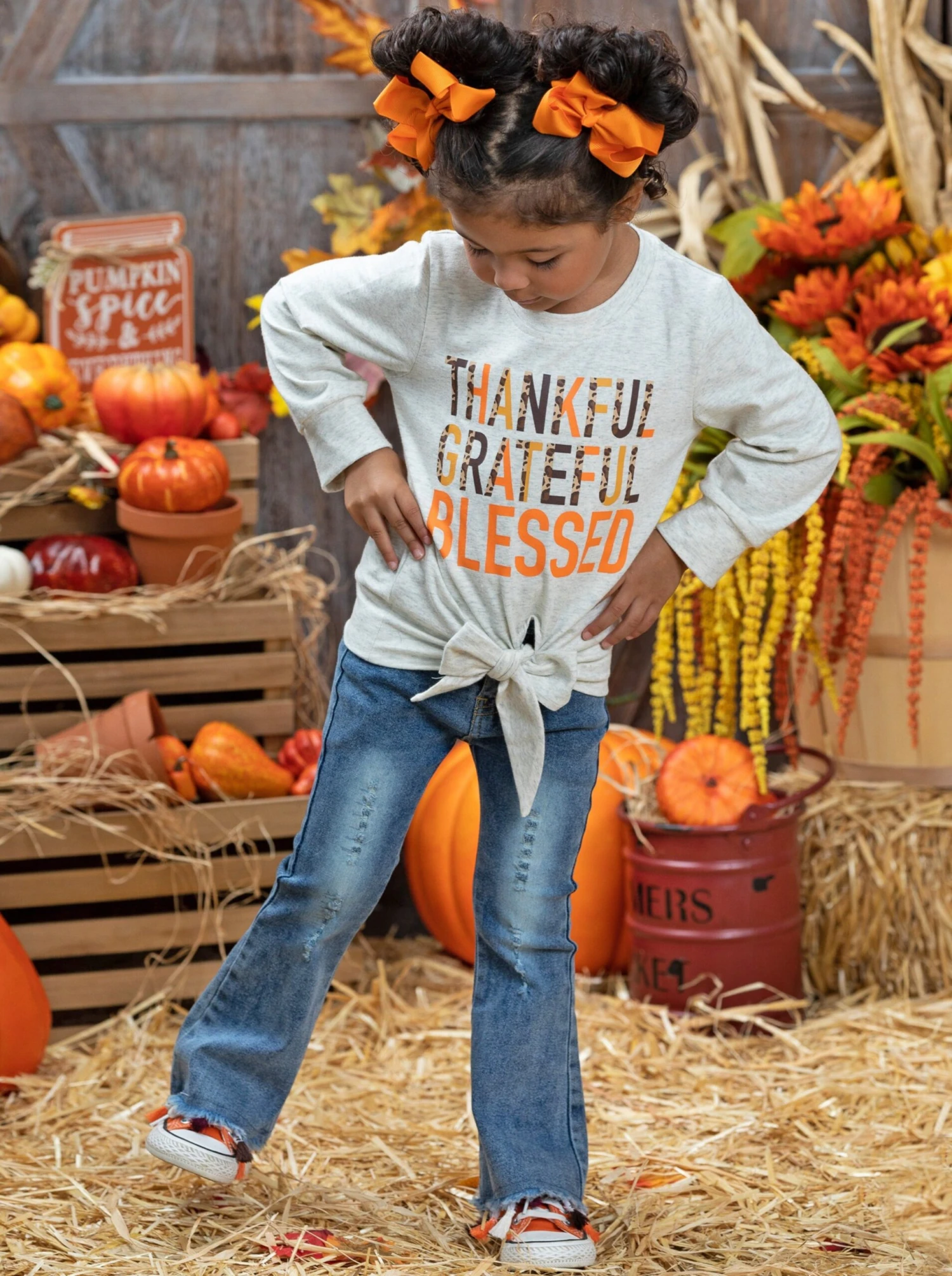 Thankful, Grateful, Blessed Tassel Bell Bottom Jeans Set