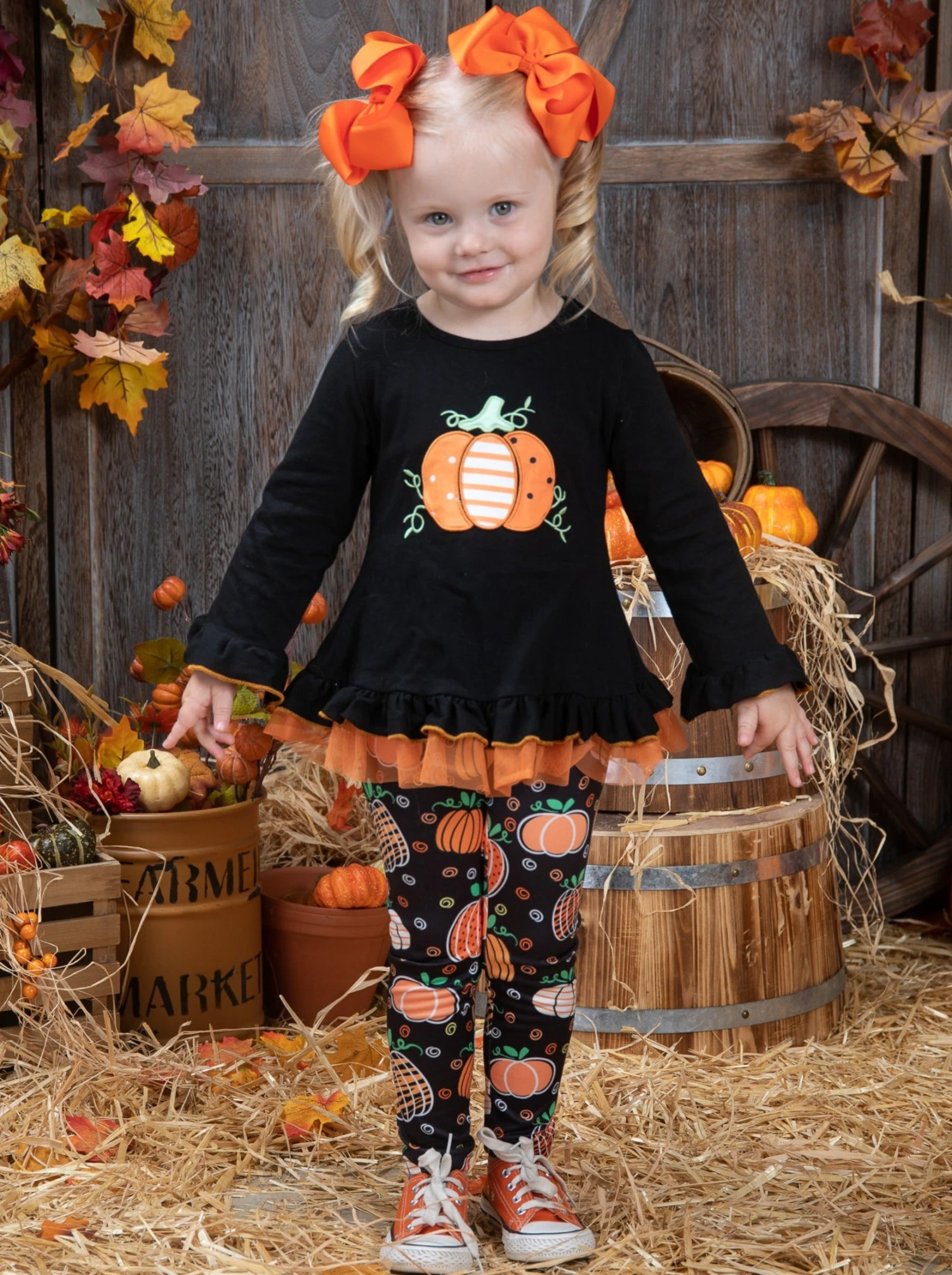 - Catch compliments left and right in this trendy legging set. Tulle frills on the tunic will send your little girl twirling through pumpkin patched like a princess. And the coordinated design looks adorable no matter the occasion.