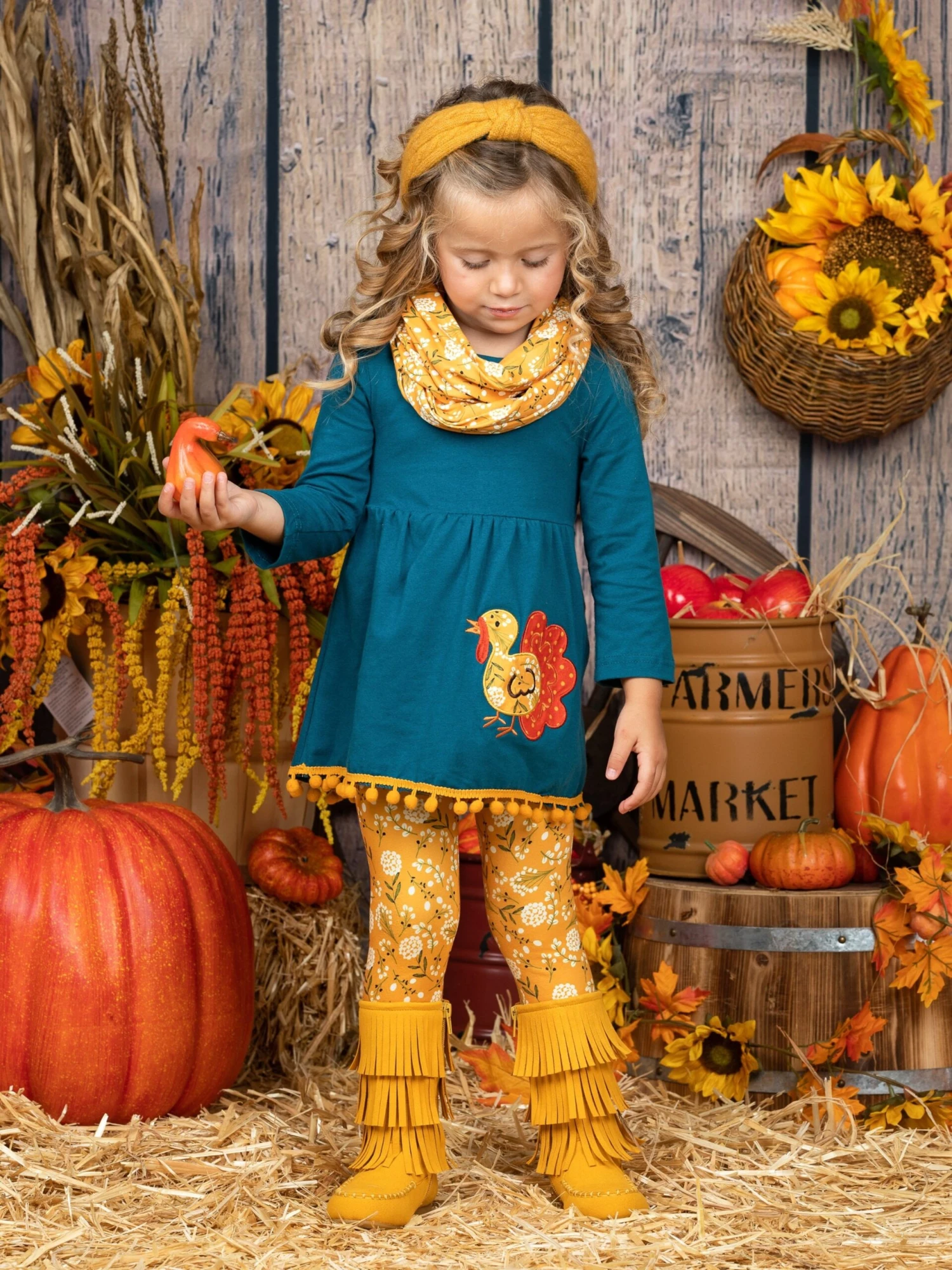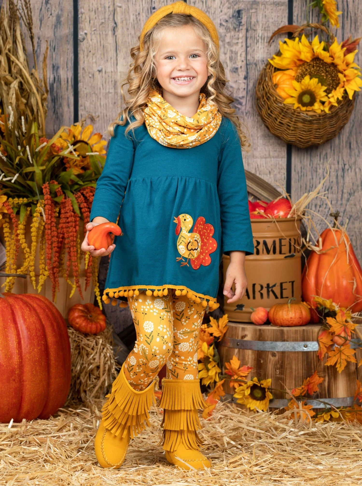 - Couldn’t you just gobble up your little girl in this sweet turkey three-piece legging set? Prep your girl for chilly days and harvesttime activities in this easy all-in-one look.Â
