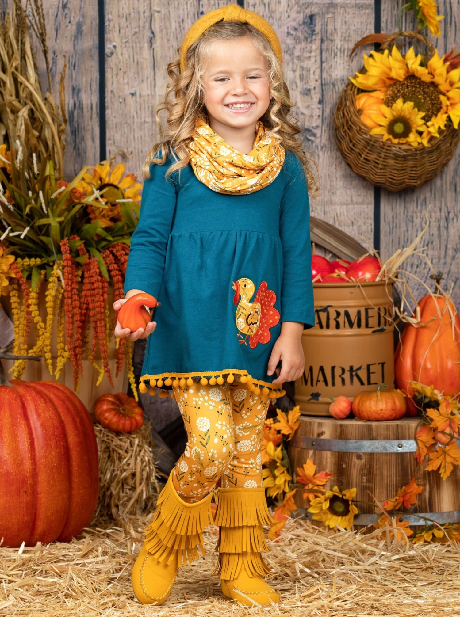 Turkey Season Pom Pom Tunic, Leggings & Scarf Set