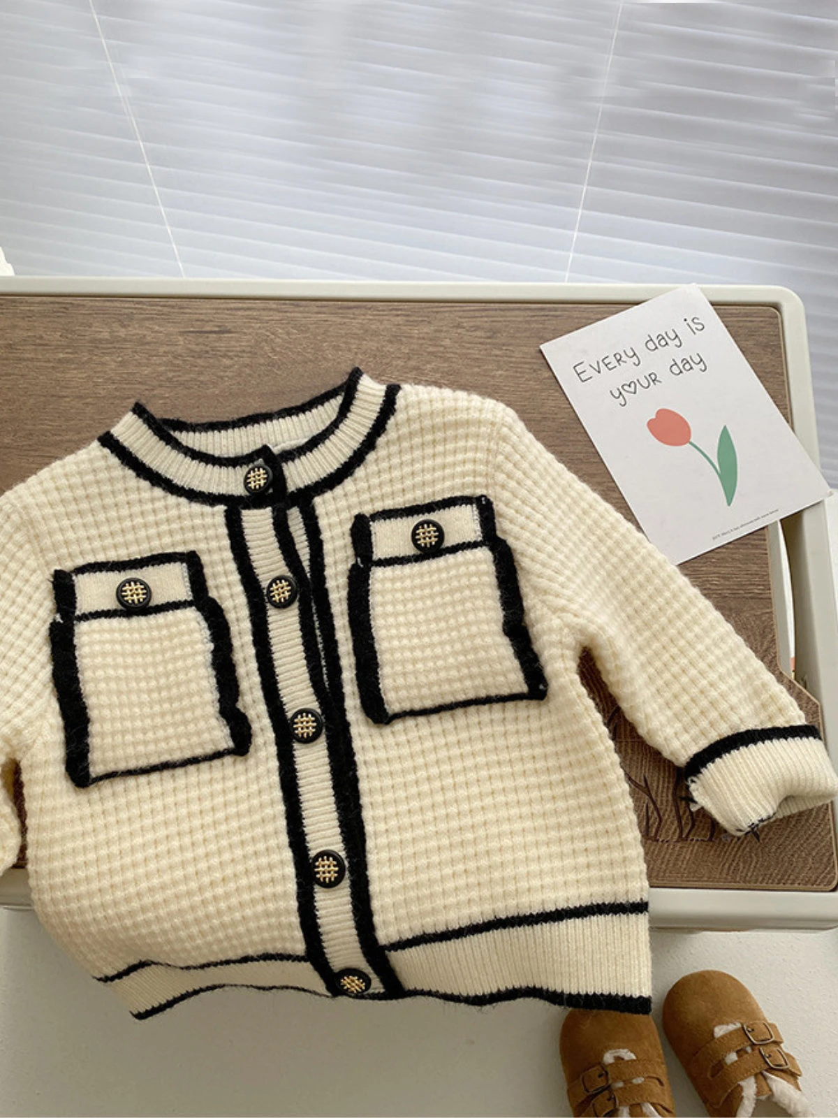 Add a sophisticated touch to your little girl’s look with our stunning waffle knit cardigan. Made for pint-sized prepsters, this gorgeous sweater is a must-have for your fashionista. Layer over any outfit and she’ll instantly look OOTD-ready!