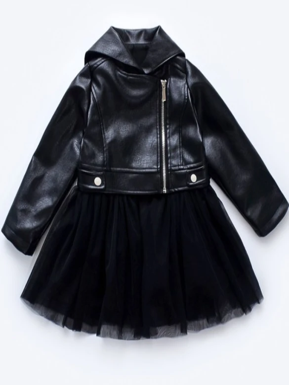 - Was your little lady born to be wild? Help her express it in this incredible VEGAN leather jacket and detachable skirt set. That’s right, we said detachable skirt!