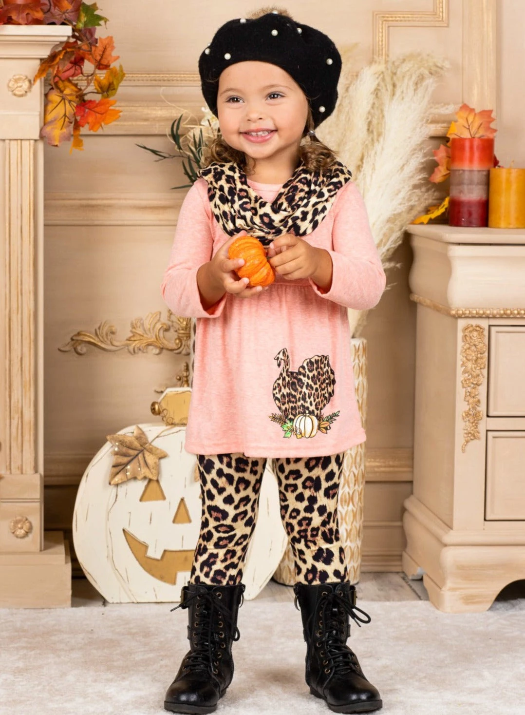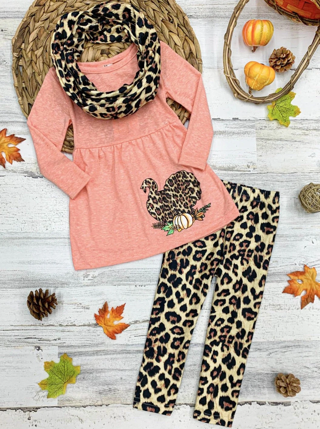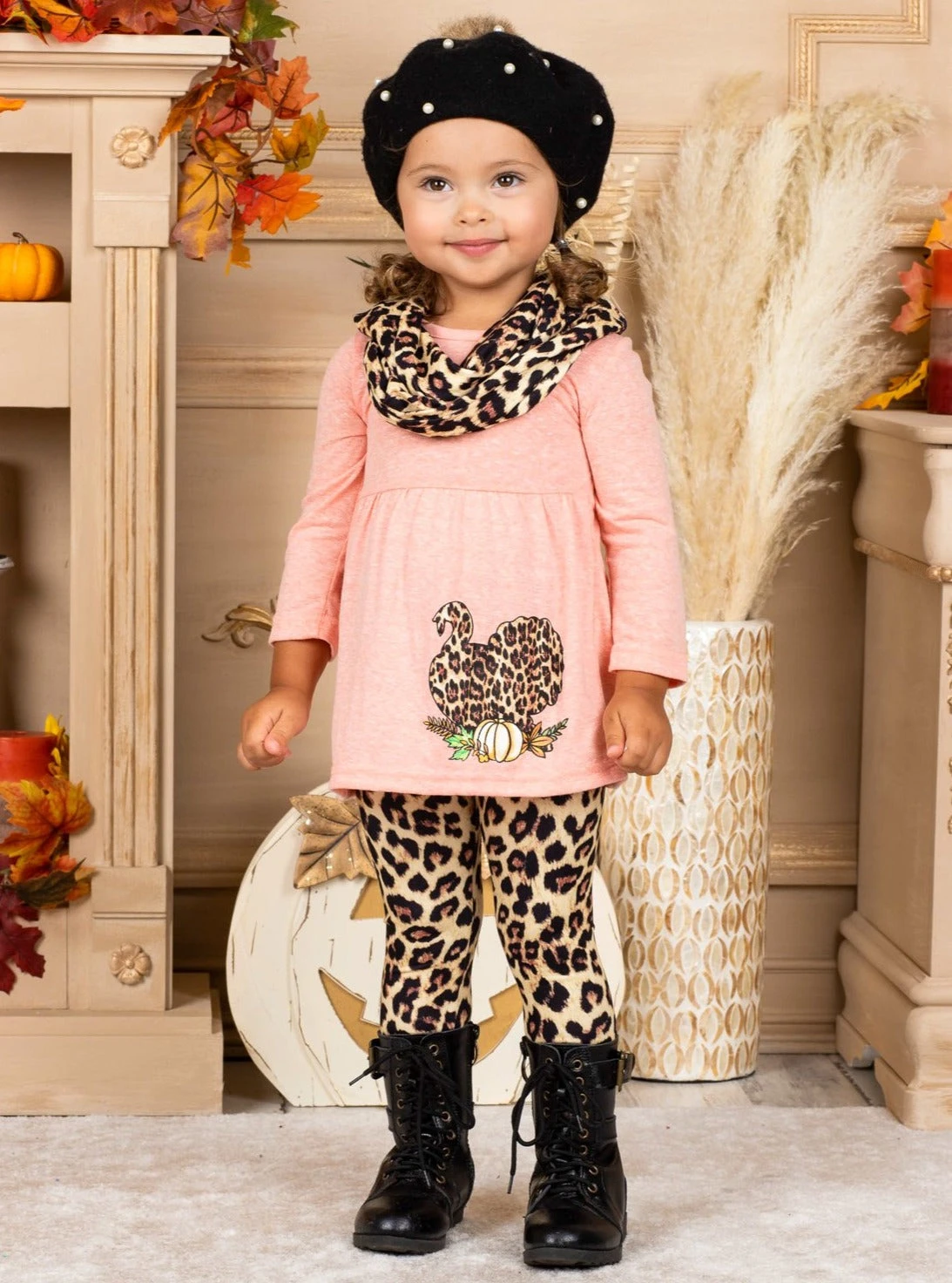 Wild Turkey Tunic, Leopard Leggings & Scarf Set