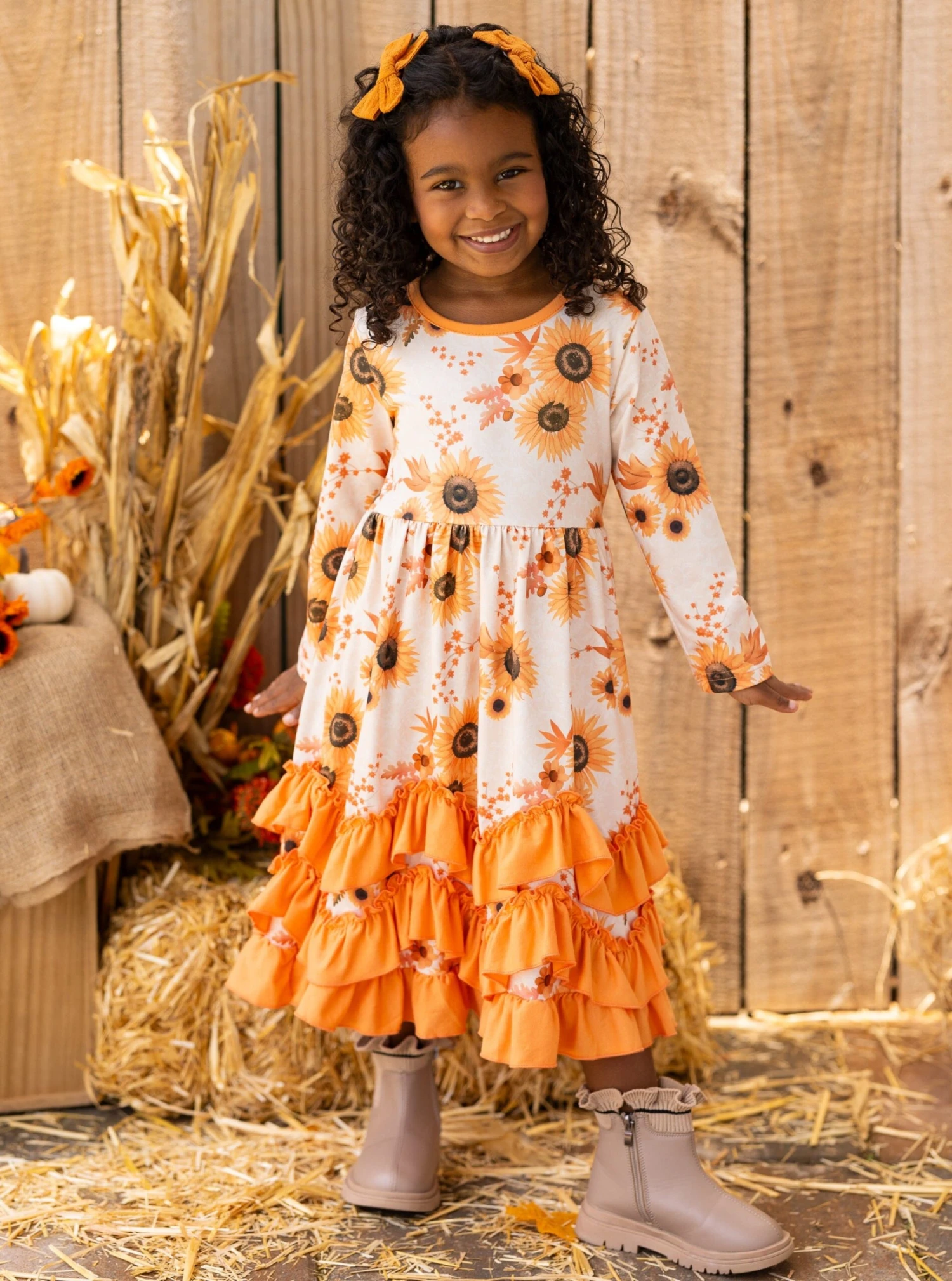 - Calling all floral-loving fashionistas! We’ve got the perfect girls’ tiered ruffle dress for you! The autumn vibes are almost TOO adorable!Â